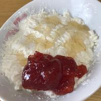 - 2 ボールに水きりした1を入れ、泡立て器でまぜます。その中に、はちみつを加えよく合わせます。