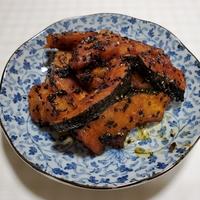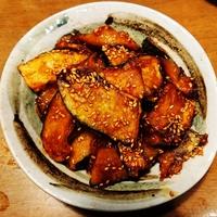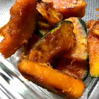衣なしでレンチンしたかぼちゃを焼いて、タレを煮絡めました。
