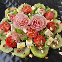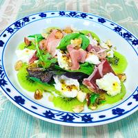 甘酸っぱいキウイフルーツに、チーズと生ハムがよく合う!さっぱりさわやかで、フルーティーなキウイのサラダです。意外な組み合わせですが、キウイの甘さに生ハムの塩辛さがとても美味しいですよ。お好みの葉物野菜も入れて、美味しくアレンジしてくださいね。