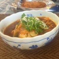 キムチを多めに入れたので濃い味になりました。キムチの量で、濃くor薄く調節できます。