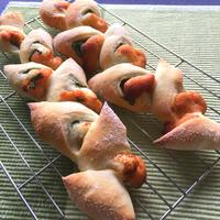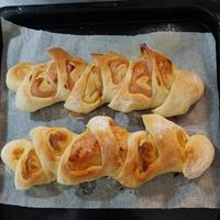 - 6 ハサミで切り込みを入れて成形し、180℃のオーブンで15分焼きます。焼き色がついたら取り出して完成です。