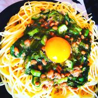 ネバネバ、本当にネバネバで美味なパスタ(⑉• •⑉)食べやすさ、そして、食感共に大変おすすめレシピ。( *ˊᵕˋ)ノ