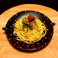ねばねば3種に梅肉と大葉を合わせたさっぱり召し上がるパスタのご紹介です。 オイルは一切使用していないのであっさりとお召し上がりいただけます。 卵黄を潰して混ぜ合わせていただくことでまろやかさもプラスされて最後まで美味しくお楽しみいただける一品に仕上げました。