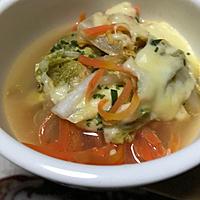 白菜、人参鶏ひき肉、白菜の順で乗せて、後入れチーズ。