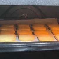 - 3 1cm幅に切ります。クッキングシートを敷いた天板にのせ、焼き色がつくまで180℃のオーブンで12分程焼いて完成です。