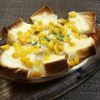 リピートレシピの一つです。トマト缶にみじん切り玉ねぎ加えてレンチンしてから作っています。好物のスモークオイルサーディン使用。トマトの酸味のコーンの甘みとトロッとしたチーズがパンに絡んでとても美味しいです。(2022/1/20)