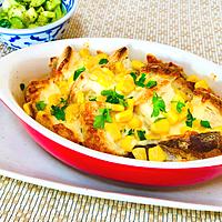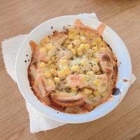 - 4 ピザ用チーズ、コーンの水煮をのせます。オーブントースターでチーズが溶け、焼き色が付くまで10分ほど焼きます。