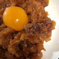 - 3 器へ盛り、中央をくぼませて卵黄を乗せたら完成です。