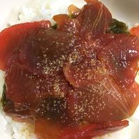 市販の漬けだれで。スーパーの刺身は漬けにしたほうが旨い。