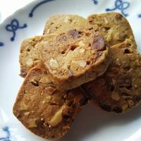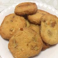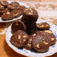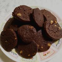 ココアなし薄力粉150g、刻んだクルミ30g、余ってたスライスアーモンド10gで作りました。バニラエッセンス忘れたのは反省点。なかなか生地がまとまらず苦戦したけど、さっくさくホロホロで理想のクッキーでした。これはまた作る!