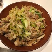 キャベツは玉ねぎに変えて、豚バラは揚げずに普通に炒めました