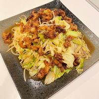 カリっと揚げた豚肉と、たっぷりのきゃべつともやしを、甘酸っぱい味付けにして炒め合わせました。シャキシャキとした野菜の食感と、カリっとした食感の残る豚肉が、とてもよく合いおいしいですよ。しっかりとした味付けですのでごはんにも良く合います。