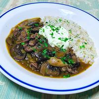 牛こまぎれが100㌘切るくらいしか無く、椎茸も無かったので、平茸を多めに使い、玉ねぎもたっぷり入れて調理してみました。少しとろみが足りませんでしたが、レシピどおりに簡単に仕上がりました。トッピングのタイムの薫りが良く効いて美味しかったです。