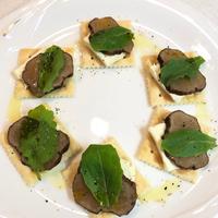 お酒のおつまみに、いぶりがっことクリームチーズのカナッペはいかがでしょうか。香ばしく食感の良いいぶりがっこと、濃厚なクリームチーズがよく合い、塩味の効いたクラッカーにのせると、とてもおいしいですよ。ぜひお試しくださいね。