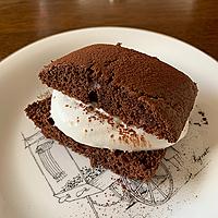 簡単で美味しい♪フワフワでケーキ自体は甘さ控えめ♪クリーム注入が難しそうだったので切って間に挟みました!