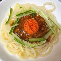 中華麺で作るジャージャー麺ですが、うどんにもこのピリ辛の肉みそがよく合います。しかも意外にもこんなに簡単に作れてしまうので何度でも作りたくなっちゃいますよ。とろーり卵と肉みそを麺によく絡めてお召し上がりくださいね。