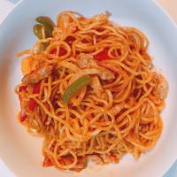 焼きそばの麺で作りました。ナポリタンのような感じでした。簡単に出来て美味しかったです!