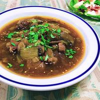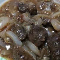 2回目です。トロトロになったお肉と玉ねぎがとっても美味しく、家族からも好評です。今回は牛すじ使用、マッシュルームを2パック追加しました。マスタードを入れなくても充分美味しいので酸味が苦手な人はマスタード抜きでもいいと思います。ホールクローブ4個追加、少量のウスターソースで調整しています。