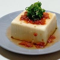 - 3 お皿に水気を切った絹ごし豆腐を盛り付け、2をかけます。1を乗せたら完成です。