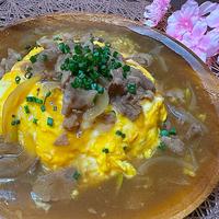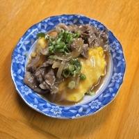 たっぷり牛肉が入ったあんかけをかけた天津飯のご紹介です。牛肉がのっているのでガッツリ、ボリュームのある一品で、満足感があります。牛肉あんかけとチーズの相性がよく、とても美味しいですよ。ぜひ、お試しくださいね。