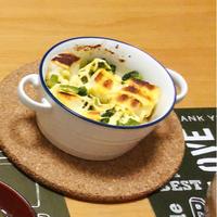 - 6 オーブン皿に5を入れ、マヨネーズを上から格子状にかけます。