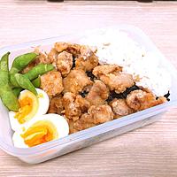 焼き海苔はお弁当箱のサイズによって切るサイズを変更して下さい。 付け合わせはお好みのものを入れて下さい。 鶏もも肉は鶏胸肉などでも代用出来ます。 お弁当として持ち運ぶ際は食中毒に配慮し、衛生的な環境下で調理を行い、持ち運びの際は保冷剤をつけて冷蔵庫やなるべく涼しい場所に保管してください。加熱の必要があるものは必ずよく火を通し、しっかり粗熱を取り、余分な汁気は切ってからお弁当に詰めてください。