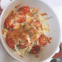 - 3 耐熱皿に2を入れ、ピザ用チーズをかけて、オーブントースターで8分程焼きます。