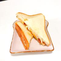 - 4 2と3を合わせサンドイッチにします。 半分に切って、お皿に盛り付けて出来上がりです。