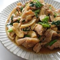 鶏肉、たけのこ、小松菜で。