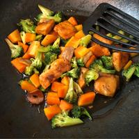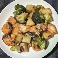 ホクホクとしたじゃがいもと、ブロッコリーを鮭と一緒に炒め合わせました。薄力粉をまぶして焼き色を付けた鮭は、表面はサクッと焼きあがっていて、食感もお楽しみいただけますよ。夜ごはんの一品にいかがでしょうか。