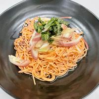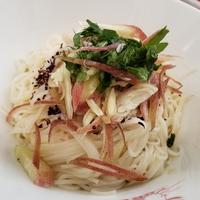 ピンク色のそうめんを使ったらナポリタンみたいな色になってしまいました^^;
