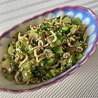 - 3 熱したフライパンにごま油を入れ、2とちりめんじゃこを加えて強火で炒めます。