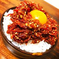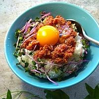 - 3 器にごはんをよそい、卵黄をのせて完成です。