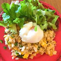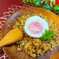 チャーハンをガパオライスの味付けにアレンジした一品です。ナンプラーとバジルの香りがし、とても美味しいですよ。今回は卵も一緒に炒めていますが、最後に、目玉焼きや温泉卵などを乗せても美味しく召し上がれます。是非お試しください。