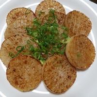 知人から大根を頂いて作りました。大根は、ぐったりする位レンチンしてから焼きに入った方が上手くいくと思います(その方が慌てないから)。バターを溶かしたら弱火で両面を焼き最後のポン酢の時に弱中火にする位かな。ポン酢を入れる時に余りに火力が強いと、すぐに蒸発して慌てます。あっ!隠し包丁は面倒だけど、やった方がバターしみしみになります。美味しかったです‼️