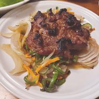 トースターではなくグリルで作りました。お酒がすすむよう味を濃いめにして。美味しい♡時短簡単!フライパン等の洗い物が出ない!材料もラム肉と玉ねぎだけ!(余ってたピーマンと人参で彩り足してますが)とにかく何が言いたいかというと最高でした♪