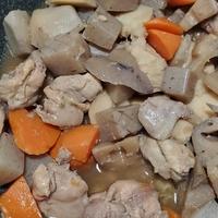 - 5 里芋は皮をむき、縦半分に切ります。大きいものはさらに半分に切り、1に入れます。