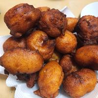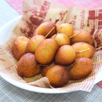 - 5 鍋底から5cm程の高さまで揚げ油を注ぎ、180℃に温め、4を生地がふくらんできつね色になるまで揚げます。