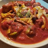 - 4 全体に焼き色がついたらトマトソースの材料を入れて中火で煮ます。