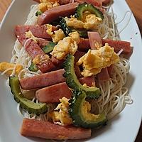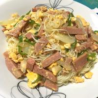 スパムの塩気と卵の甘みが絶妙にマッチした味わい深い一品です。苦手な方はゴーヤの代わりにピーマンと玉ねぎを使っても美味しく、野菜の食感も楽しめます。ゴーヤを使う場合は湯掻きすることで苦味が程よくなり、スパムとの相性も抜群。味付けはシンプルながら満足感があり、残った素麺やひやむぎの活用にもぴったり。コンソメを加えるとさらに風味が増します。