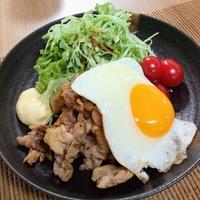 豚こま肉を使用。丼ではなく皿盛りにしました😊炒めた後にちょこっと残った旨味ソースをキャベツの千切りにかけて、余すことなく美味しくいただきました😋