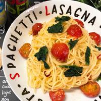 パスタはちょっと味が薄かったけどトマトがいい味出してました。バジルなかったので彩りにほうれん草入れました。
