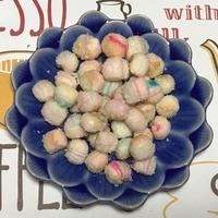 カラフルでコロンとしたフォルムが可愛い、あられ風和菓子の紹介です。 フライパン一つで作れる簡単おやつは、甘くて食べやすい大きさなので、小さいお子様でも美味しくいただけます。 可愛くラッピングして、お土産として持って行ってもオススメです。