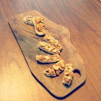 厚切りパンが余っていたので、横にもスライスして倍量で作ってみました!ナッツ好きなので、アーモンドスライスの他に、カシューナッツとアーモンドクラッシュもプラス!美味しく出来ましたー♬(*´◒`*)