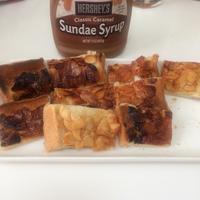 キャラメルが無かったので、家にあったHERSHEY'Sのキャラメルシロップ(25g使用)で代用しました。その為、レシピでのキャラメル+水→レンジの工程は、キャラメルシロップのみでレンジ加熱、他はレシピ通り。