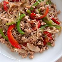 No.1389 今回、赤パプリカは人参で代用しました🙇♀️簡単に作れてとても美味しかったです😍ちょうど良い味で、野菜はたっぷり、春雨はつるつるでご飯にもよく合います😋ちなみに、調味料とお水は事前に混ぜ合わせておくと楽チンです👍家族にも大好評だったので、また作りたいです✨