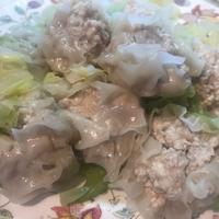 - 3 フライパンにレタスを敷き、2を乗せ、熱湯を注ぎ入れ、蓋をして中火で加熱します。