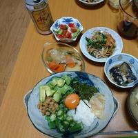 ネバネバでボリューム感のある丼です。火を使わずに切ってのせるだけの簡単調理ですので、忙しい時間帯にもってこいです。卵黄は温泉卵に代えてもおいしいですし、お好みでわさびを足すのもおすすめです。ぜひお試しくださいね。