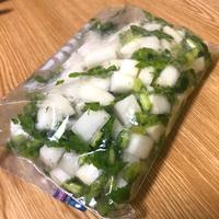 - 1 大根は1.5cm角に切ります。ジッパー付保存袋に塩と共に入れて揉み込み、冷蔵庫で15分程置きます。