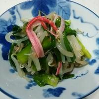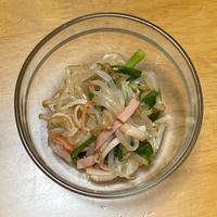 中華風味が食欲そそる、簡単ホットサラダのご紹介です。カニカマがアクセントになり、満足度がアップします。辛い物が苦手な方はコチュジャンを入れなくてもおいしくいただけますよ。晩ごはんにもお酒のおつまみにもおすすめです。